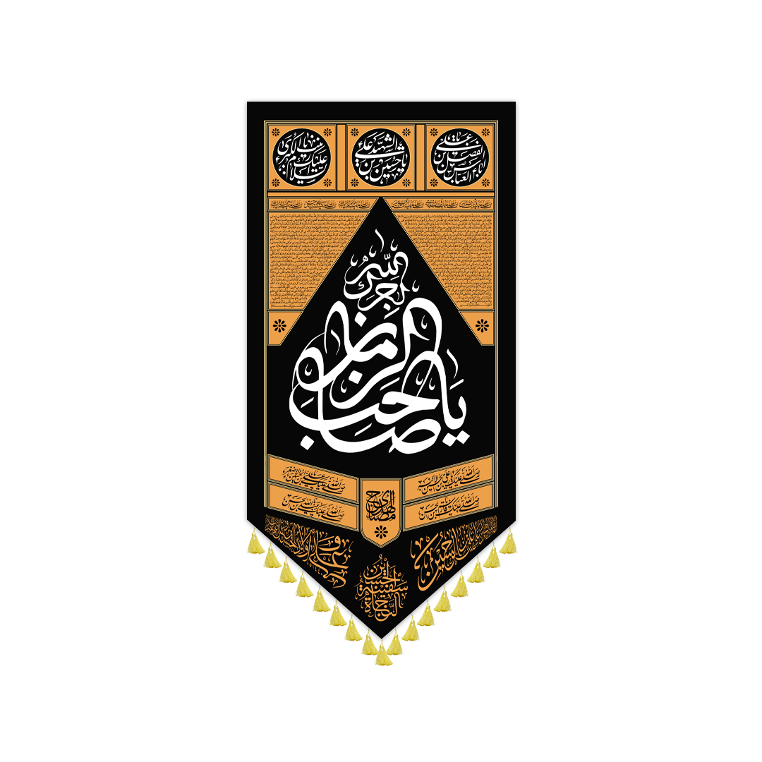 کتیبه آویز «آجرک الله یا صاحب الزمان علیهالسلام» طراحی شده از عبارت تایپوگرافی «آجرک الله یا صاحب الزمان» در مرکز و اسامی اولاد و اصحاب حضرت اباعبدالله الحسین علیهمالسلام در جای جای کتیبه است. همچنین زیارت عاشورا در دو طرف «آجرک الله یا صاحب الزمان» به زیبایی درج شده و در قسمتی پایین کتیبه ۴ سلام زیارت عاشورا به همراه حدیث زیبای «إن الحسین مصباح الهدی و سفینة النجاة» خطاطی شده که به زیبایی کتیبه افزوده است. تلفن تماس: 09338630407 - ادمین ایتا: http://eitaa.com/admin_gomnam
