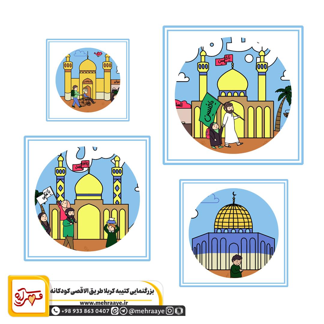 کتیبه «کربلا طریق الاقصی (کودکانه)» با استفاده از تکنیک نقاشی مسیر پیاده روی اربعین را برای مخاطب کودک به گونه ای روایت می کند که مخاطب کودک از حرم و حصن حصین امیرالمومنین علی علیهالسلام به کربلای اباعبدالله الحسین علیهالسلام و اباالفضل العباس علیهالسلام میرسد و این راه است که او را به فتح بیت المقدس می رساند. همان جمله ای که رزمندگان هشت سال دفاع مقدس بر لب داشتند که «می گذرد راه قدس از ره کرببلا» تلفن تماس: 09338630407 - ادمین ایتا: http://eitaa.com/admin_gomnam