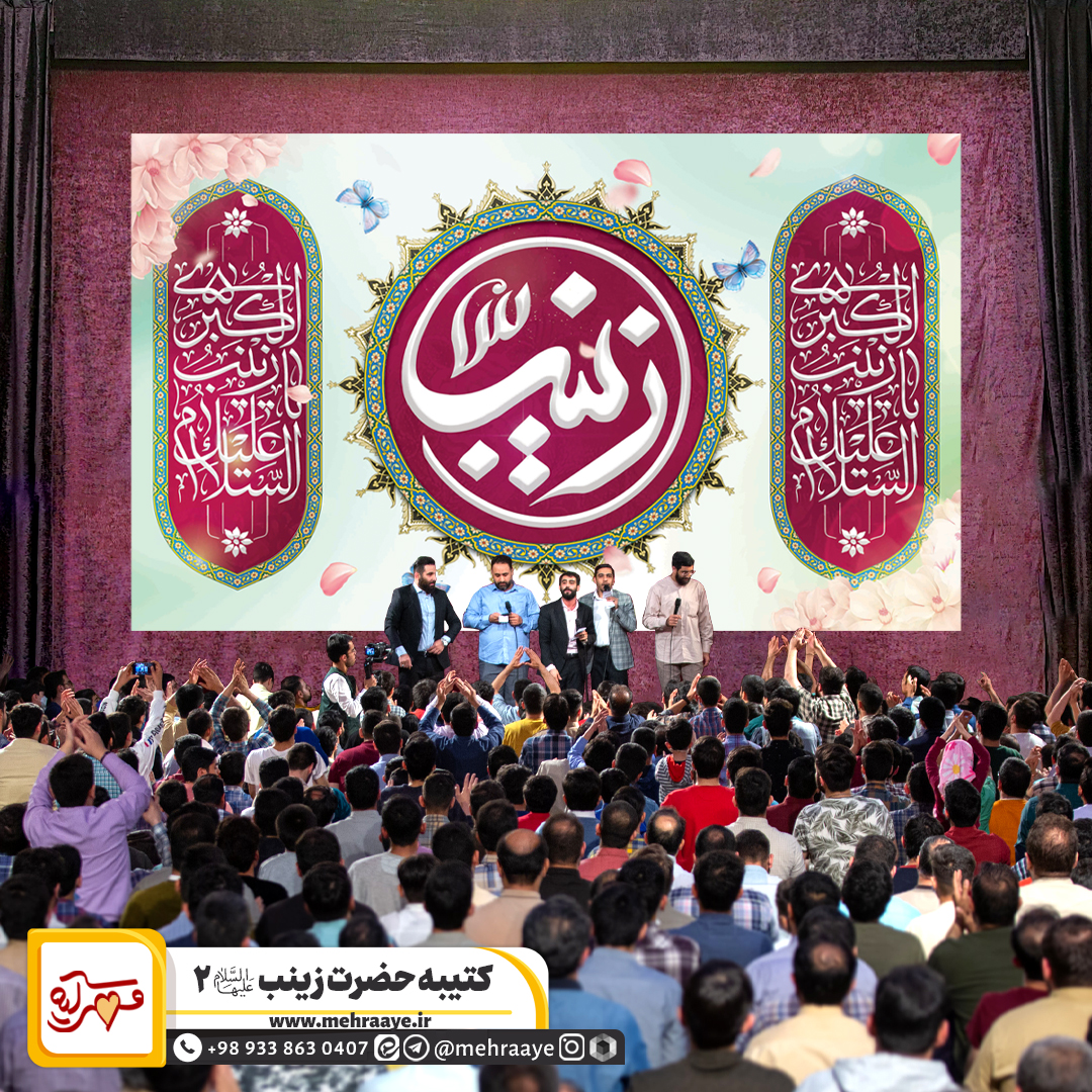 کتیبه پشت منبری «ولادت حضرت زینب علیهاالسلام ٢» مناسب برای ایام ولادت حضرت زینب علیها السلام است که در هیئات و مساجد استفاده می شود. تلفن تماس: 09338630407 - ادمین ایتا: http://eitaa.com/admin_gomnam