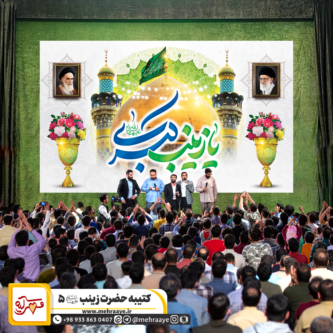 کتیبه پشت منبری «ولادت حضرت زینب علیهاالسلام ۵» مناسب برای ایام ولادت حضرت زینب علیها السلام است که در هیئات و مساجد استفاده می شود. تلفن تماس: 09338630407 - ادمین ایتا: http://eitaa.com/admin_gomnam