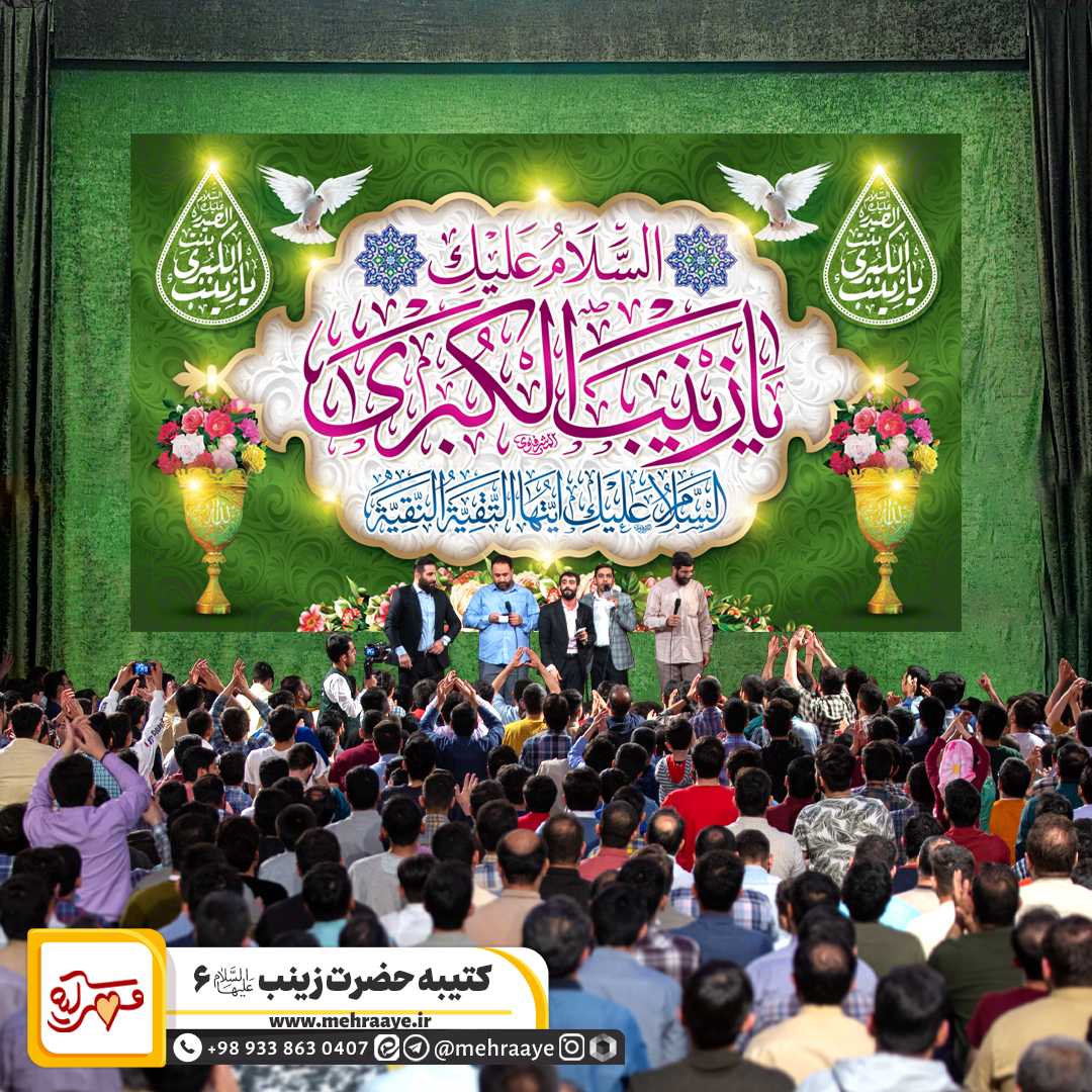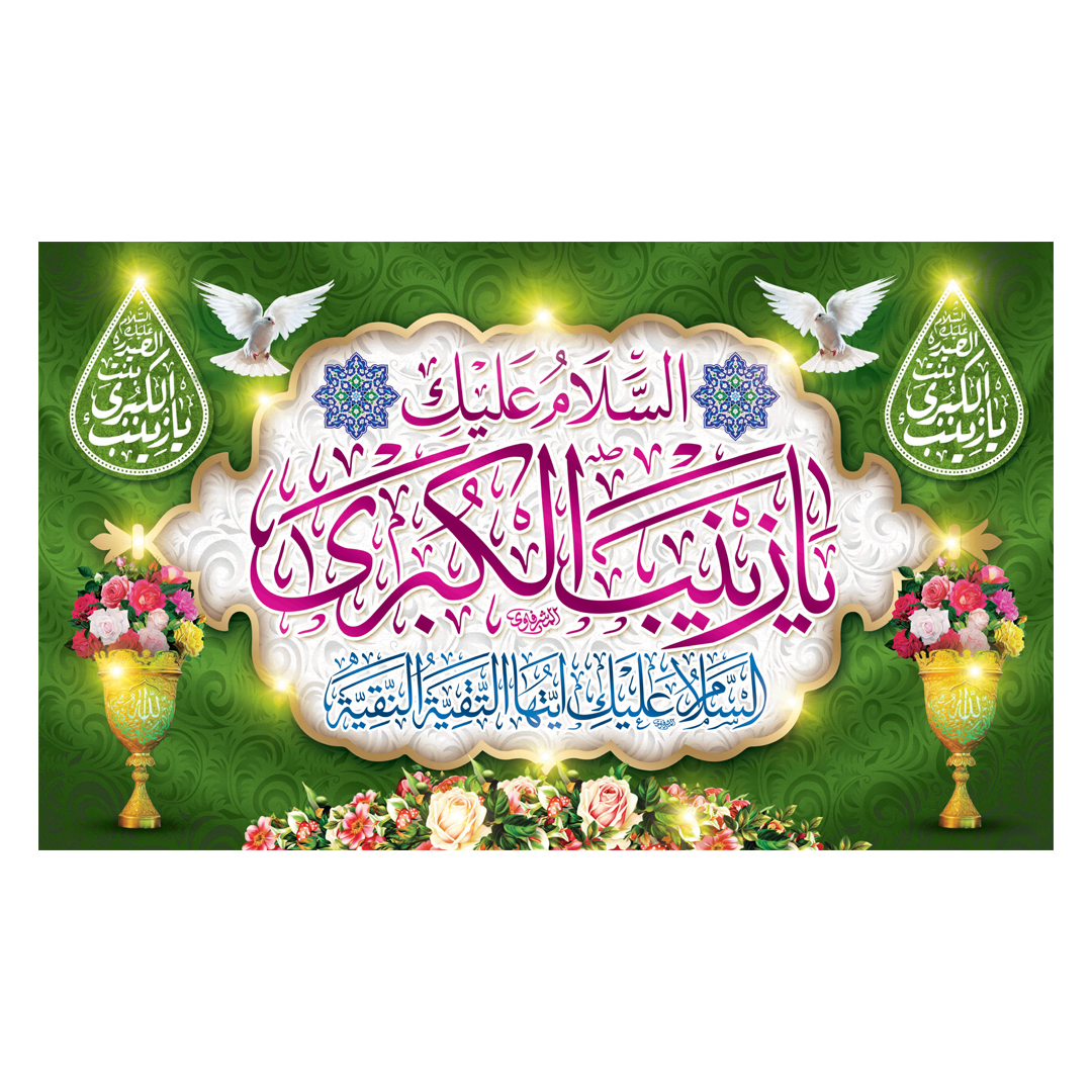کتیبه پشت منبری «ولادت حضرت زینب علیهاالسلام ۶» مناسب برای ایام ولادت حضرت زینب علیها السلام است که در هیئات و مساجد استفاده می شود. تلفن تماس: 09338630407 - ادمین ایتا: http://eitaa.com/admin_gomnam