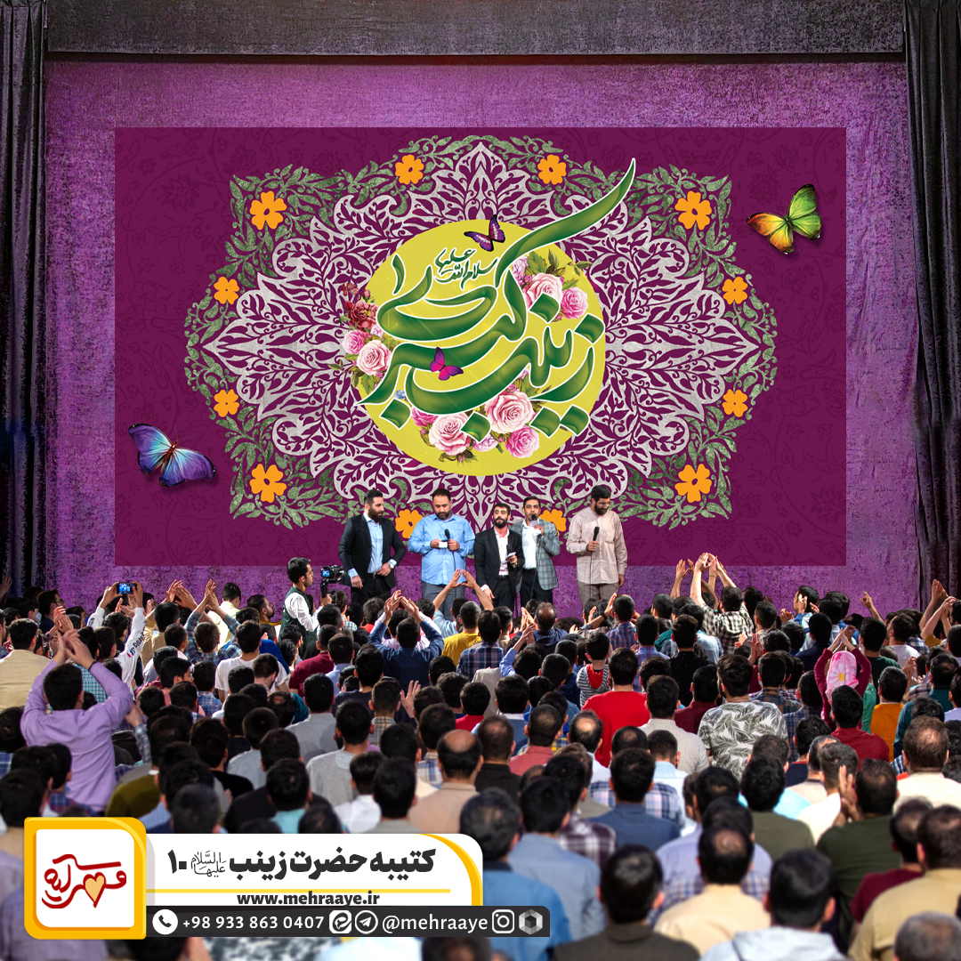 کتیبه پشت منبری «ولادت حضرت زینب علیهاالسلام ١٠» مناسب برای ایام ولادت حضرت زینب علیها السلام است که در هیئات و مساجد استفاده می شود. تلفن تماس: 09338630407 - ادمین ایتا: http://eitaa.com/admin_gomnam