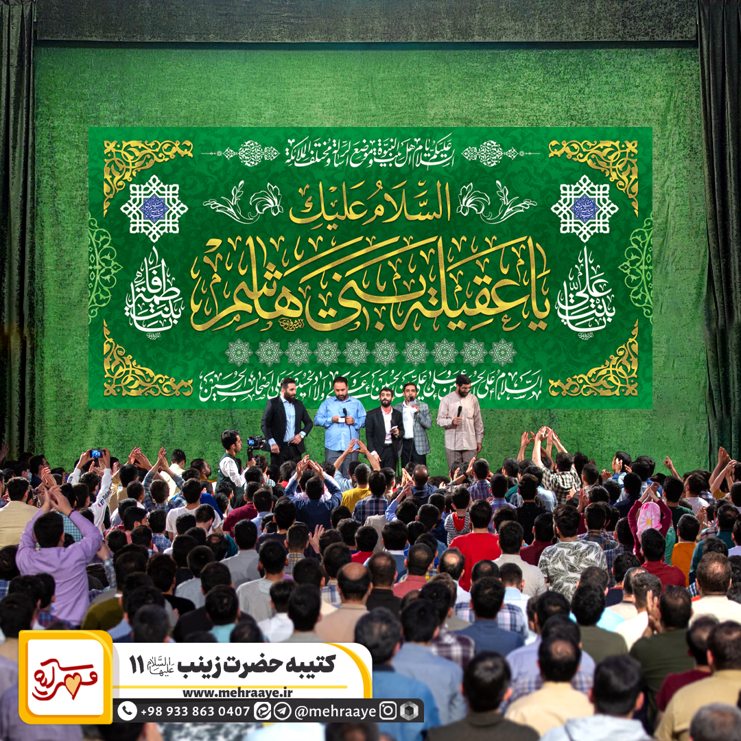 کتیبه پشت منبری «ولادت حضرت زینب علیهاالسلام ١١» مناسب برای ایام ولادت حضرت زینب علیها السلام است که در هیئات و مساجد استفاده می شود. تلفن تماس: 09338630407 - ادمین ایتا: http://eitaa.com/admin_gomnam