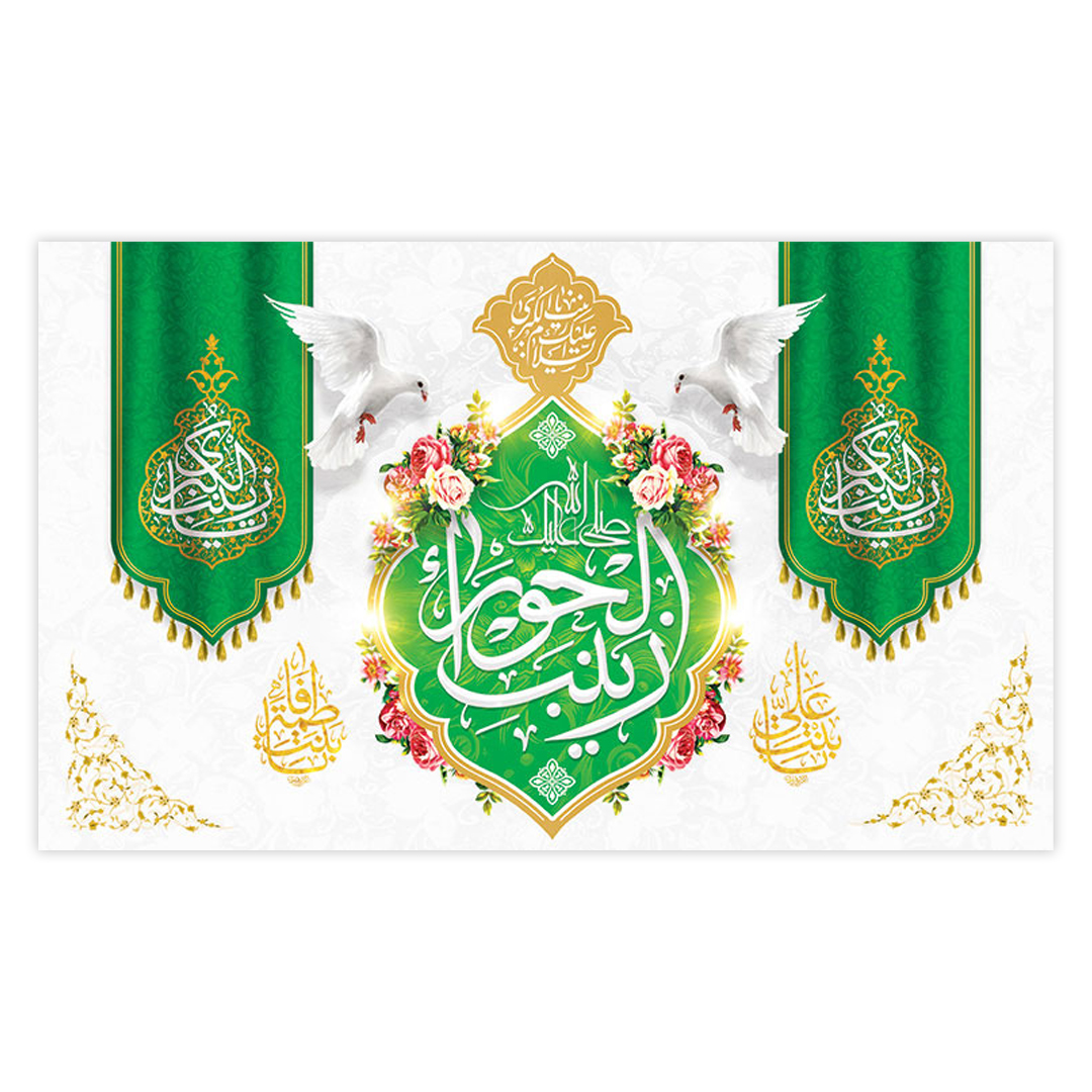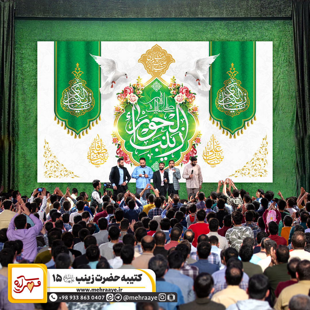 کتیبه پشت منبری «ولادت حضرت زینب علیهاالسلام ١۵» مناسب برای ایام ولادت حضرت زینب علیها السلام است که در هیئات و مساجد استفاده می شود. تلفن تماس: 09338630407 - ادمین ایتا: http://eitaa.com/admin_gomnam