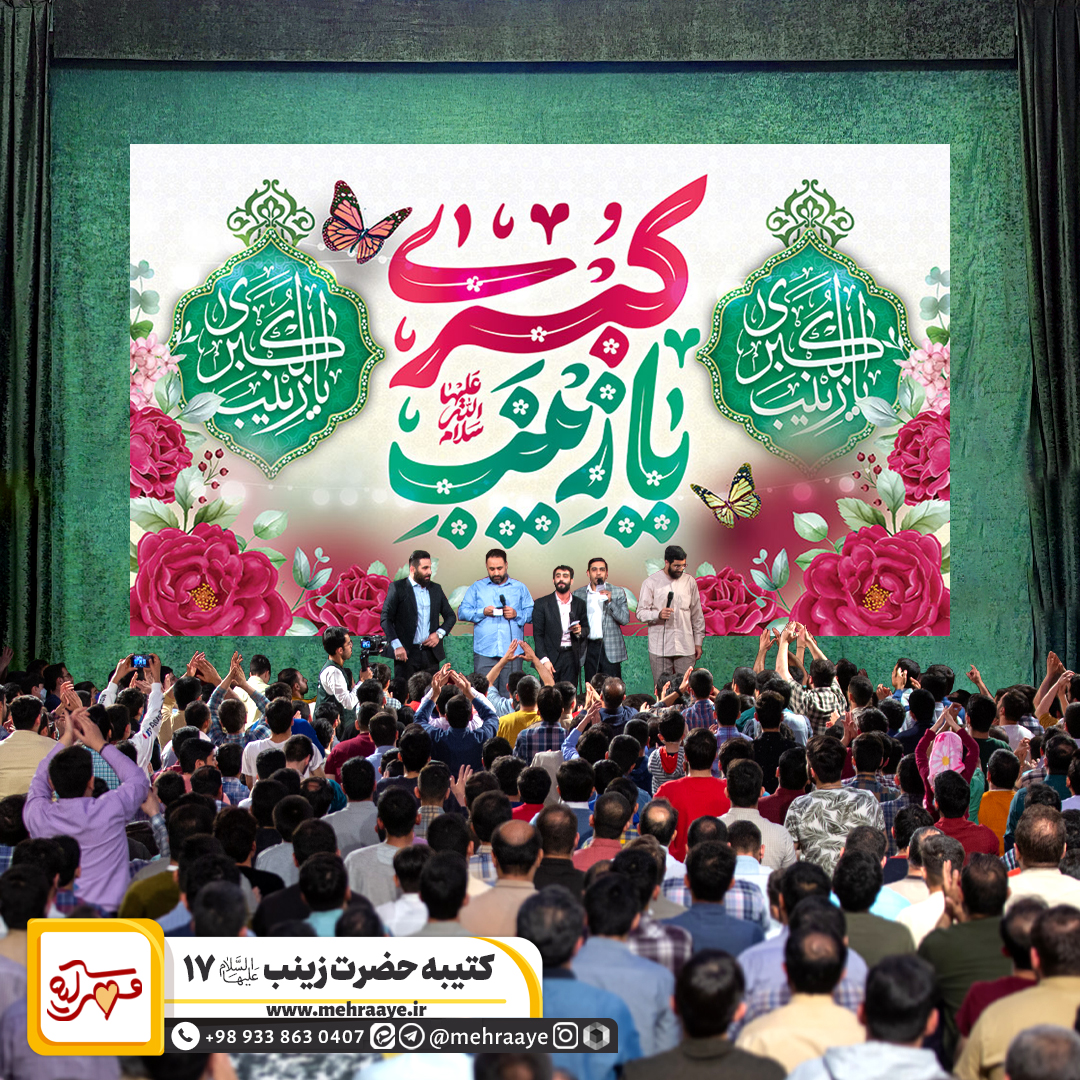 کتیبه پشت منبری «ولادت حضرت زینب علیهاالسلام ١٧» مناسب برای ایام ولادت حضرت زینب علیها السلام است که در هیئات و مساجد استفاده می شود. تلفن تماس: 09338630407 - ادمین ایتا: http://eitaa.com/admin_gomnam