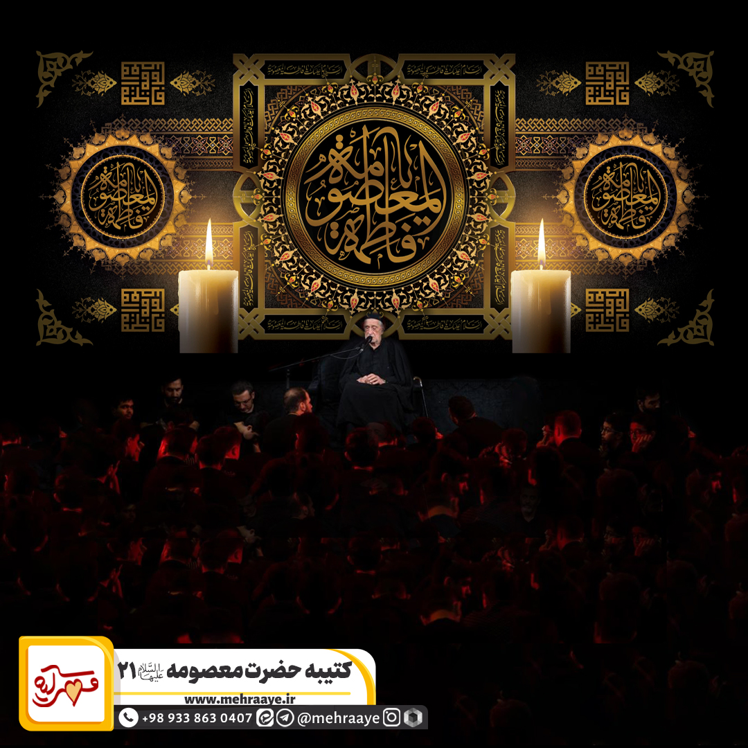 کتیبه پشت منبری وفات «حضرت معصومه علیهاالسلام ٢١» مناسب برای ایام وفات شهادت گونه حضرت فاطمه معصومه سلام الله علیهاست که در حسینیه ها، مساجد و هیئات خانگی قابل استفاده است. حضرت فاطمه معصومه سلام الله علیها هنگامی که برای دفاع از حرم امامت و دیدن برادرشان حضرت علی بن موسی الرضا علیه السلام از مدینه به ایران و سپس به قم مراجعت نمودند و در راه مورد هجوم ماموران مامون ملعون قرار گرفتند که به گفته برخی ایشان به دلیل مسمومیت به شهادت رسیدند. تلفن تماس: 09338630407 - ادمین ایتا: http://eitaa.com/admin_gomnam