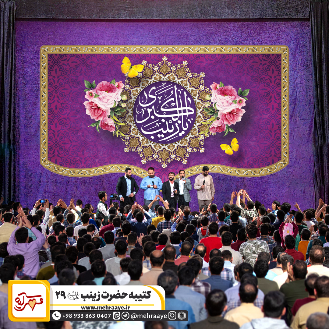 کتیبه پشت منبری «ولادت حضرت زینب علیهاالسلام ٢٩» مناسب برای ایام ولادت حضرت زینب علیها السلام است که در هیئات و مساجد استفاده می شود. تلفن تماس: 09338630407 - ادمین ایتا: http://eitaa.com/admin_gomnam