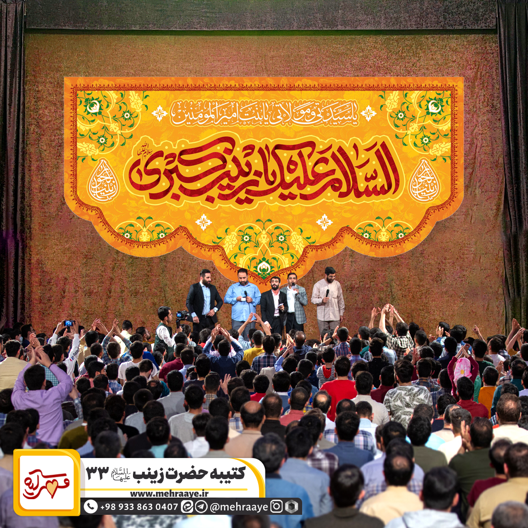 کتیبه پشت منبری «ولادت حضرت زینب علیهاالسلام ٣٣» مناسب برای ایام ولادت حضرت زینب علیها السلام است که در هیئات و مساجد استفاده می شود. تلفن تماس: 09338630407 - ادمین ایتا: http://eitaa.com/admin_gomnam