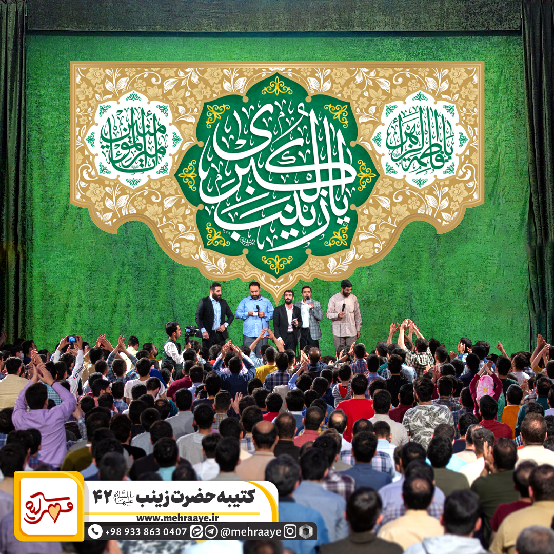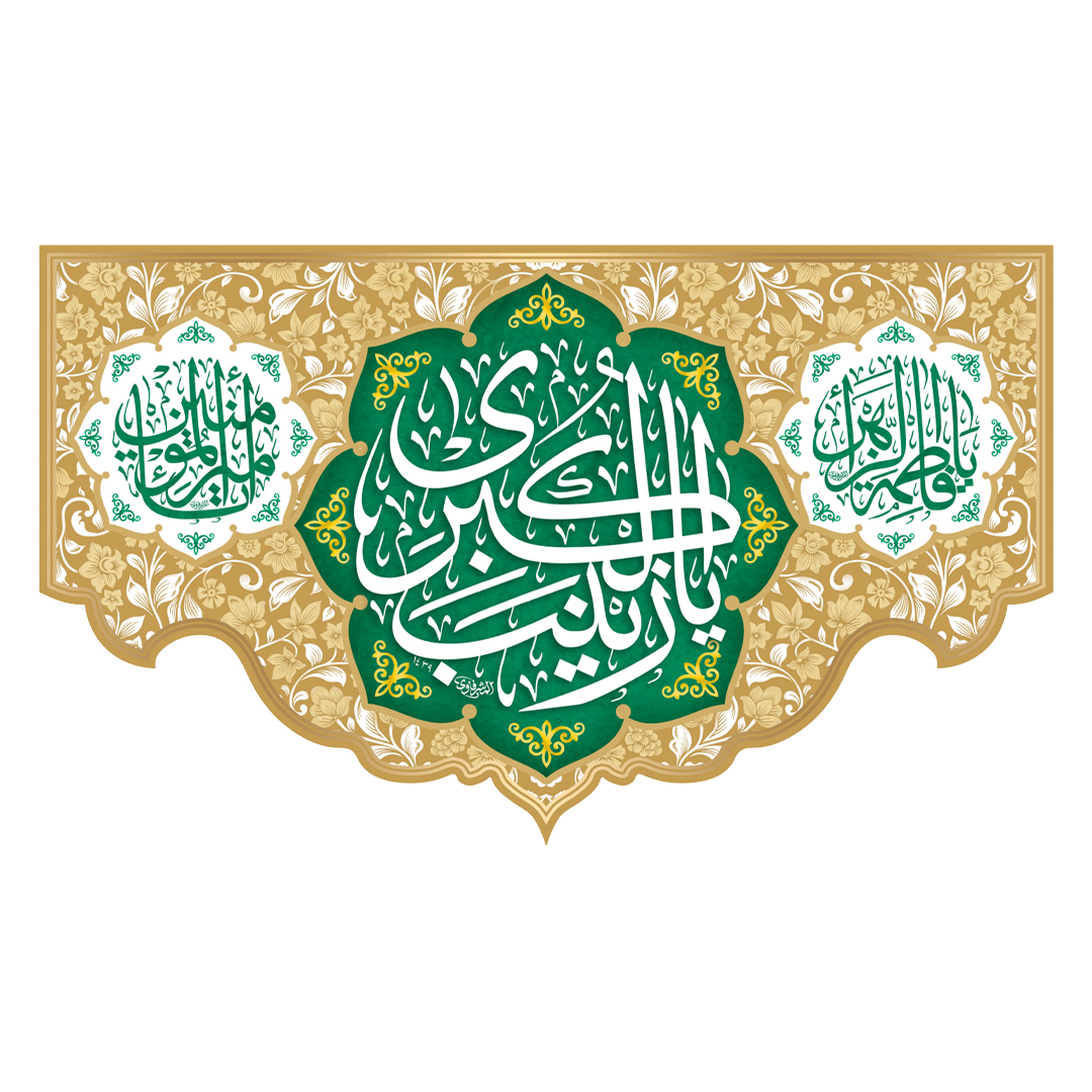 کتیبه پشت منبری «ولادت حضرت زینب علیهاالسلام ۴٢» مناسب برای ایام ولادت حضرت زینب علیها السلام است که در هیئات و مساجد استفاده می شود. تلفن تماس: 09338630407 - ادمین ایتا: http://eitaa.com/admin_gomnam