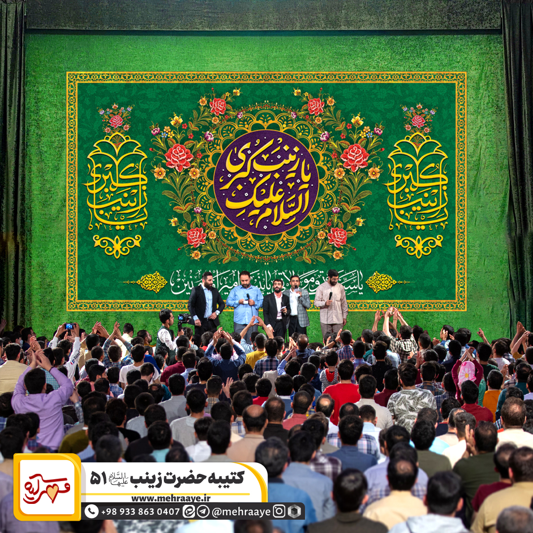 کتیبه پشت منبری «ولادت حضرت زینب علیهاالسلام ۵١» مناسب برای ایام ولادت حضرت زینب علیها السلام است که در هیئات و مساجد استفاده می شود. تلفن تماس: 09338630407 - ادمین ایتا: http://eitaa.com/admin_gomnam