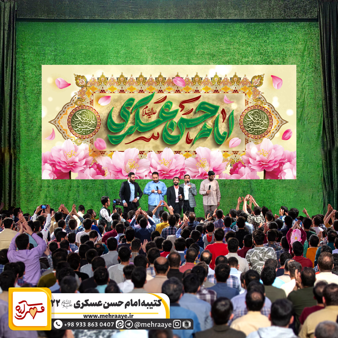 کتیبه پشت منبری «ولادت امام حسن عسکری علیهالسلام ٢٢» مناسب برای ایام ولادت امام حسن عسکری علیهالسلام است که در هیئات و مساجد استفاده می شود. تلفن تماس: 09338630407 - ادمین ایتا: http://eitaa.com/admin_gomnam