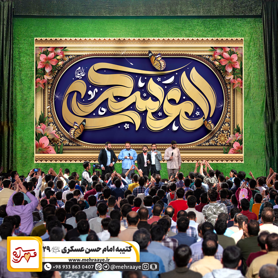 کتیبه پشت منبری «ولادت امام حسن عسکری علیهالسلام ٢٩» مناسب برای ایام ولادت امام حسن عسکری علیهالسلام است که در هیئات و مساجد استفاده می شود. تلفن تماس: 09338630407 - ادمین ایتا: http://eitaa.com/admin_gomnam