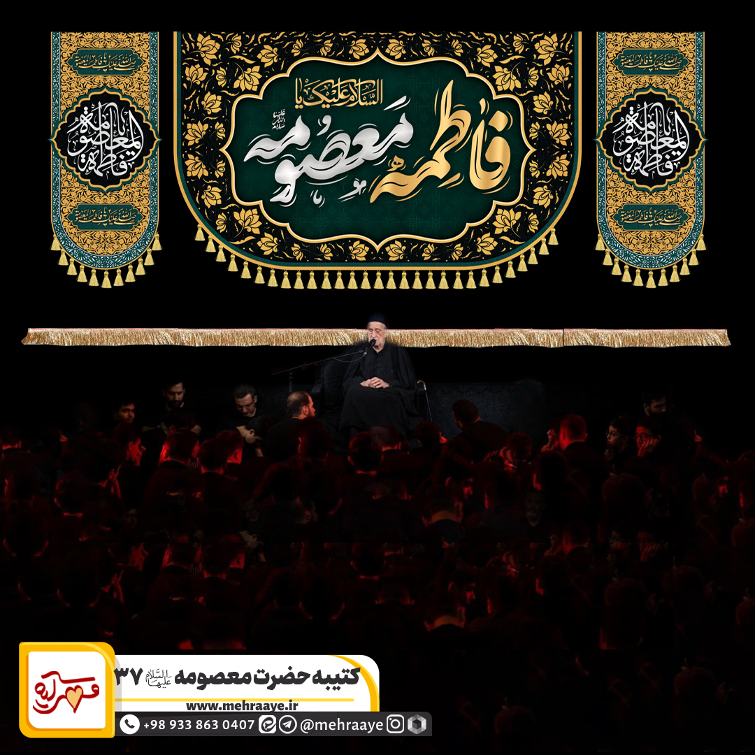 کتیبه پشت منبری وفات «حضرت معصومه علیهاالسلام ٣٧» مناسب برای ایام وفات شهادت گونه حضرت فاطمه معصومه سلام الله علیهاست که در حسینیه ها، مساجد و هیئات خانگی قابل استفاده است. حضرت فاطمه معصومه سلام الله علیها هنگامی که برای دفاع از حرم امامت و دیدن برادرشان حضرت علی بن موسی الرضا علیه السلام از مدینه به ایران و سپس به قم مراجعت نمودند و در راه مورد هجوم ماموران مامون ملعون قرار گرفتند که به گفته برخی ایشان به دلیل مسمومیت به شهادت رسیدند. تلفن تماس: 09338630407 - ادمین ایتا: http://eitaa.com/admin_gomnam