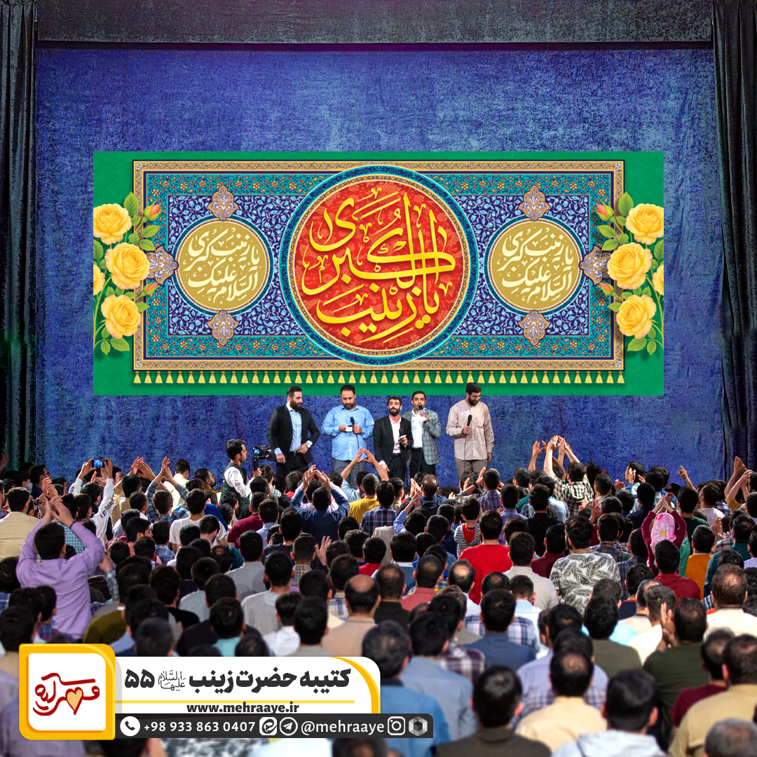 کتیبه پشت منبری «ولادت حضرت زینب علیهاالسلام ۵۵» مناسب برای ایام ولادت حضرت زینب علیها السلام است که در هیئات و مساجد استفاده می شود. تلفن تماس: 09338630407 - ادمین ایتا (روی متن آبی کلیک کنید): http://eitaa.com/admin_gomnam