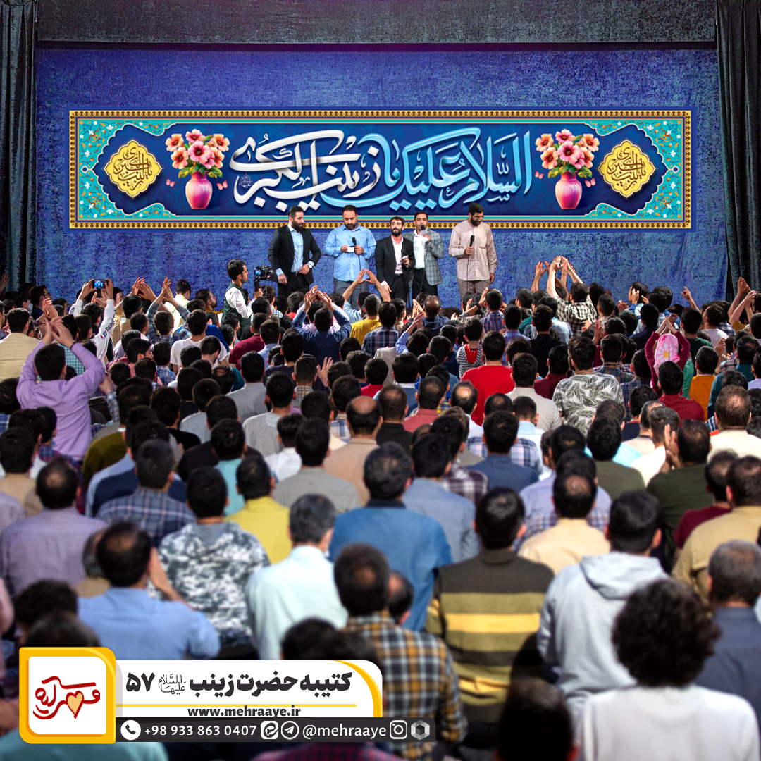 کتیبه پشت منبری «ولادت حضرت زینب علیهاالسلام ۵٧» مناسب برای ایام ولادت حضرت زینب علیها السلام است که در هیئات و مساجد استفاده می شود. تلفن تماس: 09338630407 - ادمین ایتا (روی متن آبی کلیک کنید): http://eitaa.com/admin_gomnam