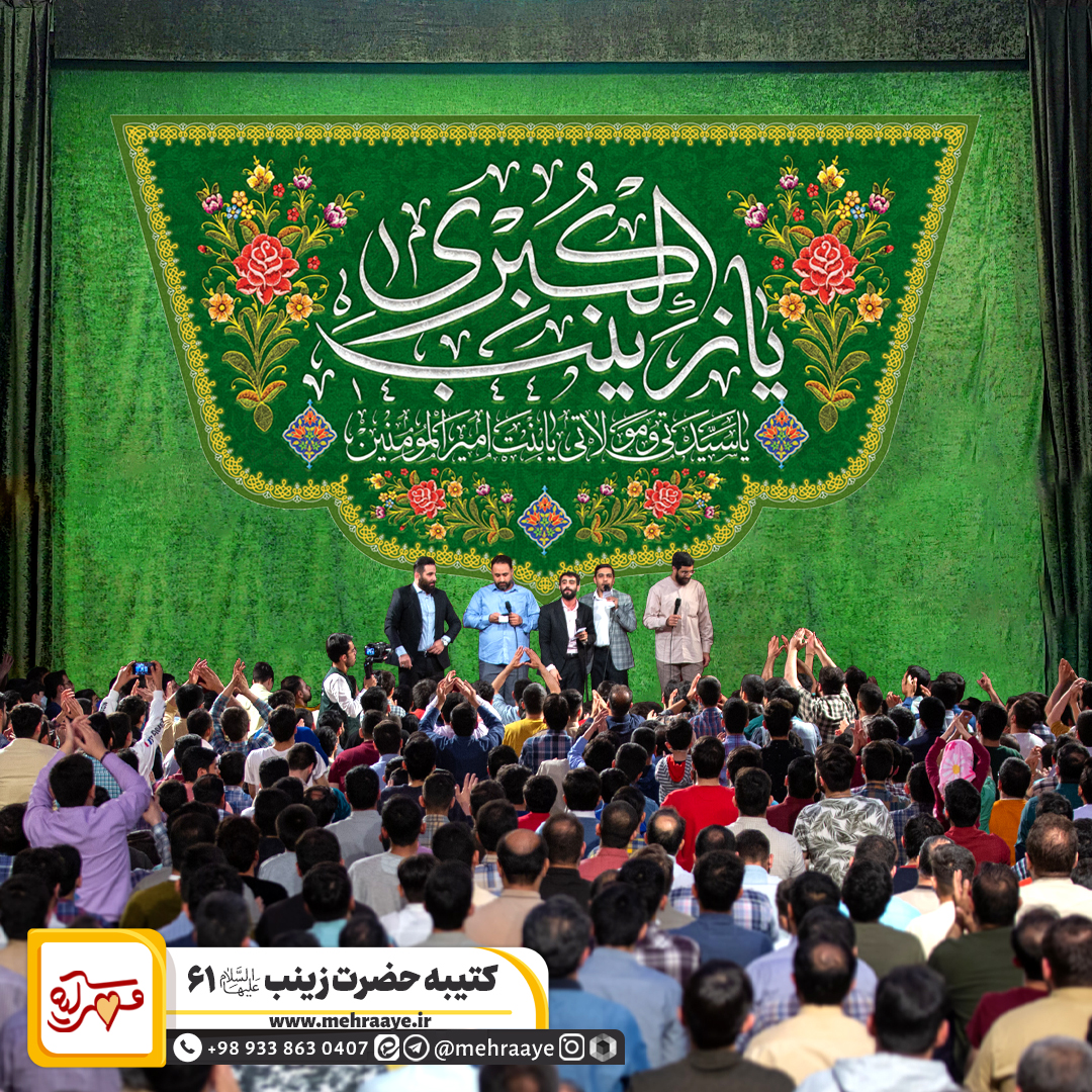 کتیبه پشت منبری «ولادت حضرت زینب علیهاالسلام ۶١» مناسب برای ایام ولادت حضرت زینب علیها السلام است که در هیئات و مساجد استفاده می شود. تلفن تماس: 09338630407 - ادمین ایتا (روی متن آبی کلیک کنید): http://eitaa.com/admin_gomnam