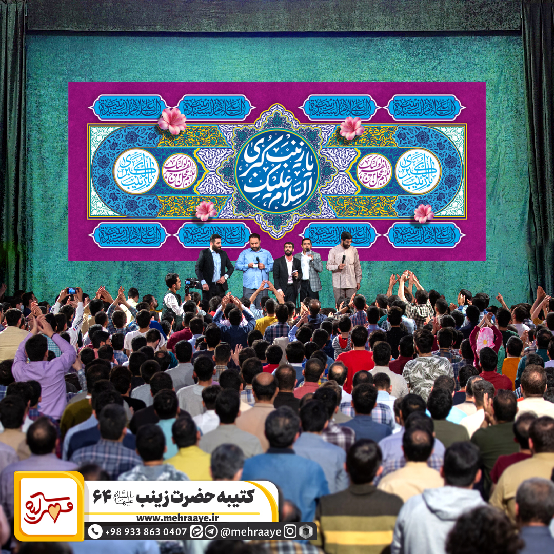 کتیبه پشت منبری «ولادت حضرت زینب علیهاالسلام ۶۴» مناسب برای ایام ولادت حضرت زینب علیها السلام است که در هیئات و مساجد استفاده می شود. تلفن تماس: 09338630407 - ادمین ایتا (روی متن آبی کلیک کنید): http://eitaa.com/admin_gomnam