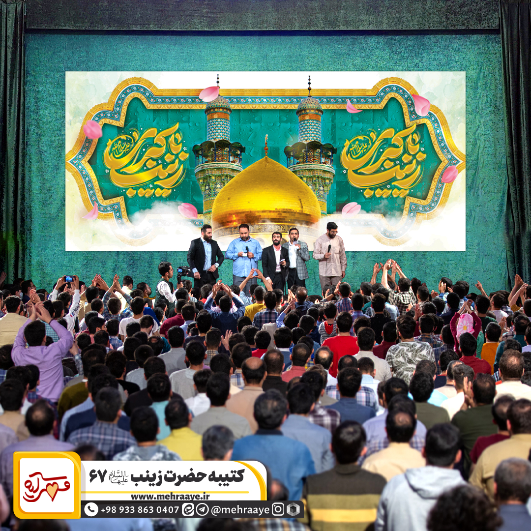 کتیبه پشت منبری «ولادت حضرت زینب علیهاالسلام ۶٧» مناسب برای ایام ولادت حضرت زینب علیها السلام است که در هیئات و مساجد استفاده می شود. تلفن تماس: 09338630407 - ادمین ایتا (روی متن آبی کلیک کنید): http://eitaa.com/admin_gomnam
